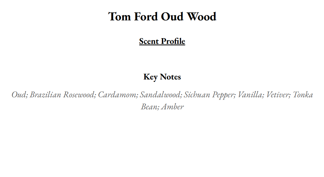 Oud Wood is smooth and polished, without any harsh edges, making it a sophisticated choice for those who want an exotic yet approachable woody scent. Perfect for evening wear or special occasions, it exudes quiet confidence and timeless elegance.