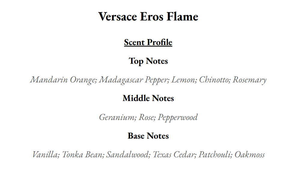 Eros Flame is crafted as a fragrance for the confident man who understands the depth of passion and emotion. Its composition transitions smoothly from energetic citrus and spice to a sweet, lingering woody base, making it suitable for both day and night. The scent is recognized for its complexity, uniqueness, and its ability to project both power and subtlety.