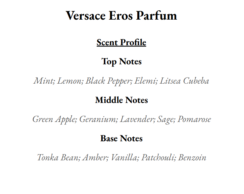 Eros Parfum stands out for its rounded, rich character with excellent longevity and projection, making it ideal for evening wear and special occasions. It balances freshness and warmth elegantly, appealing to men who seek a fragrance that is both modern and timeless.